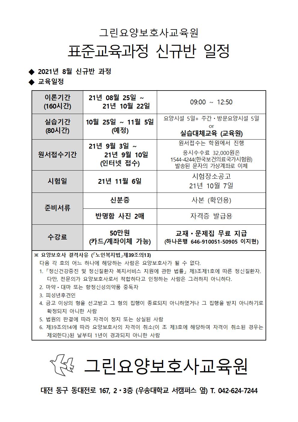 À̹ø 2021³â 11¿ù 6ÀÏ ¸¶Áö¸· ¿ä¾çº¸È£»ç ½ÃÇèÀ» ´ëºñÇÏ¿© 8¿ù ½Å±Ô¹ÝÀ» ¸ðÁýÇϰíÀÚ ÇÏ¿À´Ï