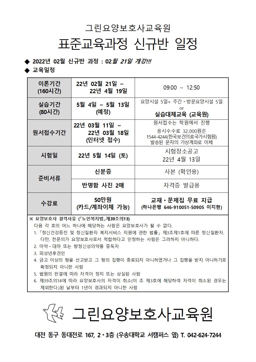 À̹ø 2022³â 5¿ù 14ÀÏ ¿ä¾çº¸È£»ç ½ÃÇèÀ» ´ëºñÇÏ¿© 2¿ù ½Å±Ô¹ÝÀ» ¸ðÁýÇϰíÀÚ ÇÏ¿À´Ï